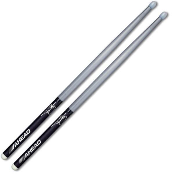nylon fejű dobverő: Tommy Lee signature dobverő, alumínium dobverő cserélhető fejjel, SAT fej, használható TIP, BALL, MBT fejekkel egyaránt, Short Taper, 16.63″ hosszúság, 0.595″ átmérő, 0.035″ falvastagság, súly: 68 g